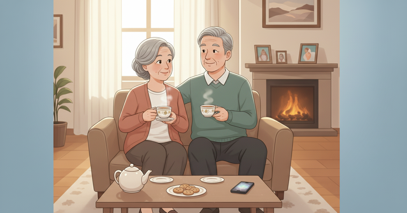 차 한 잔의 여유 속에서 자녀와의 건강한 관계를 생각하는 부모